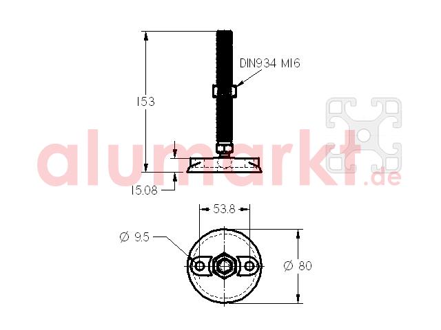 Stellfuß 8 D80 PA M16x150 mit Anschraubbohrungen