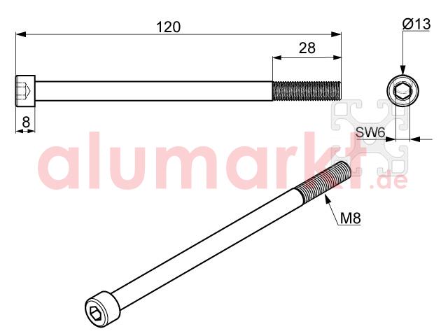 Maße: M8 x 120