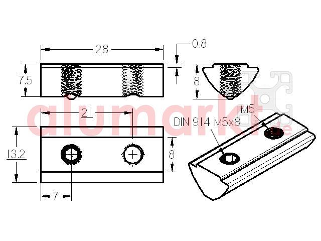 Nutenstein 8 mit Steg M5/M5 und Gewindestift